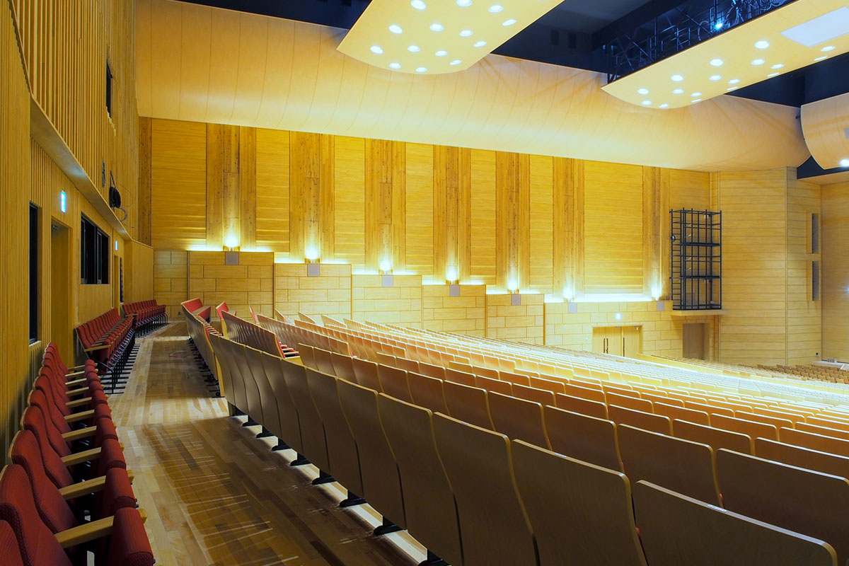 日本最大規模となる耐火木造ホールを有する「南陽市新文化会館」が、山形県南陽市に完成した。当社は、耐火木構造部を覆う仕上げ木工事を担当。様々な原寸大のモックアップによる検討をかさね、温もりのある木の空間ができあがった。