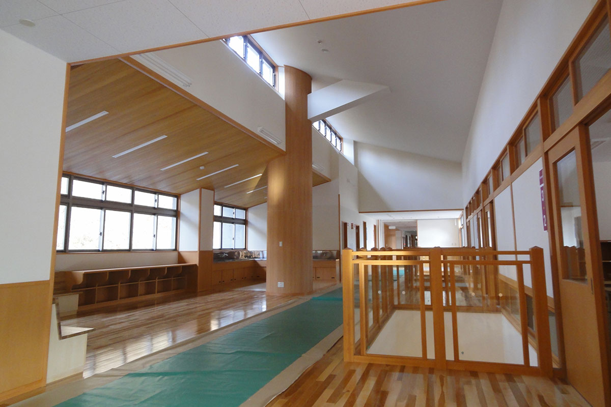 2010年12月天栄中学校の新校舎が竣工した。4月の建築工事着手からほぼ8ヶ月。当社の工事期間も10月中旬から11月中旬までのほぼ11間の短い工期。図面打合わせ、工場製作と現場施工と同時進行ながら、様々な工夫のなか、品質的にも満足のいく建築物を工期内に引き渡すことができた。
