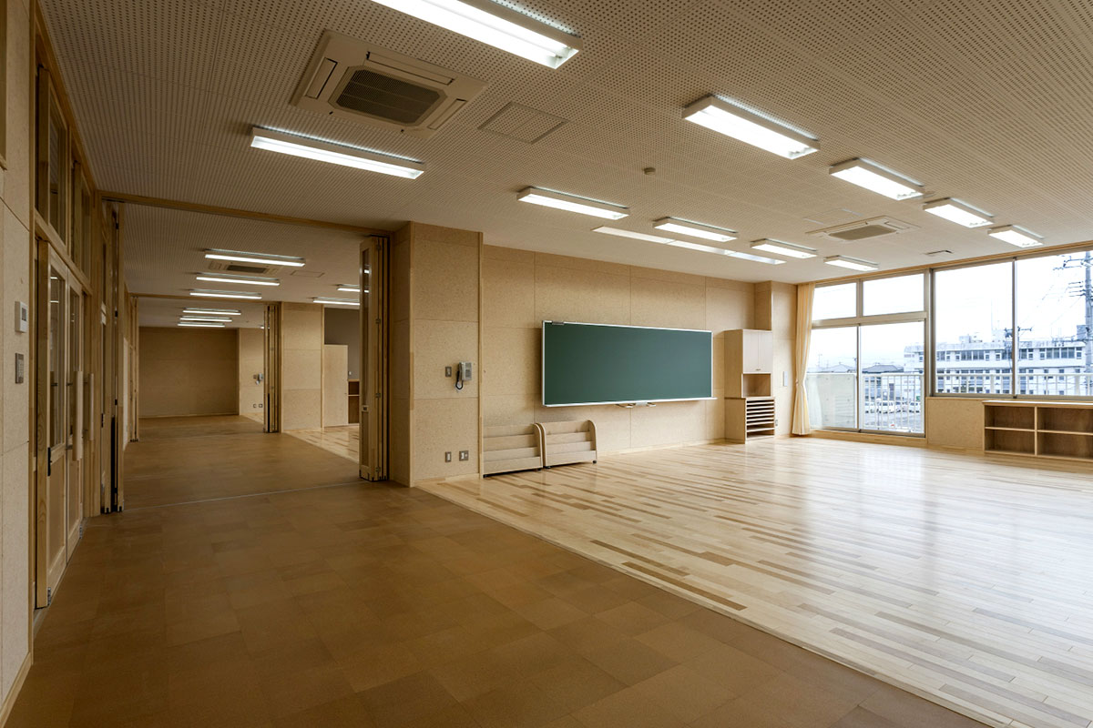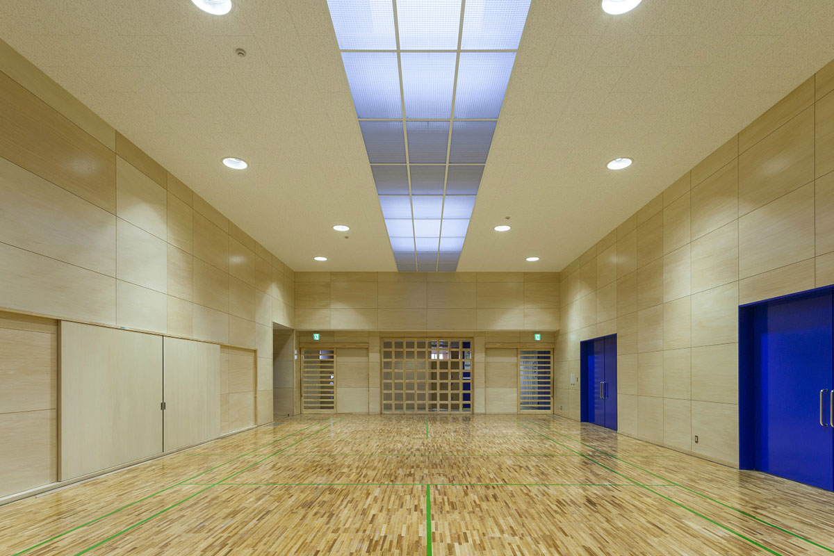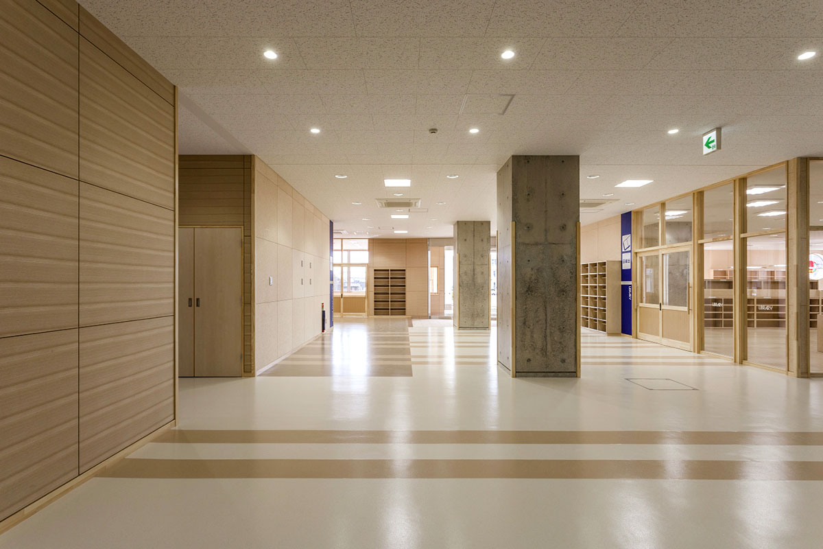 平成23年の震災により校舎が使用できなくなり、地元関係者から待たれていた新校舎完成。ふんだんに県産材の木材が使用された。